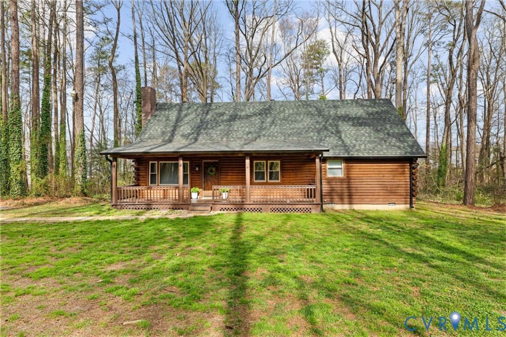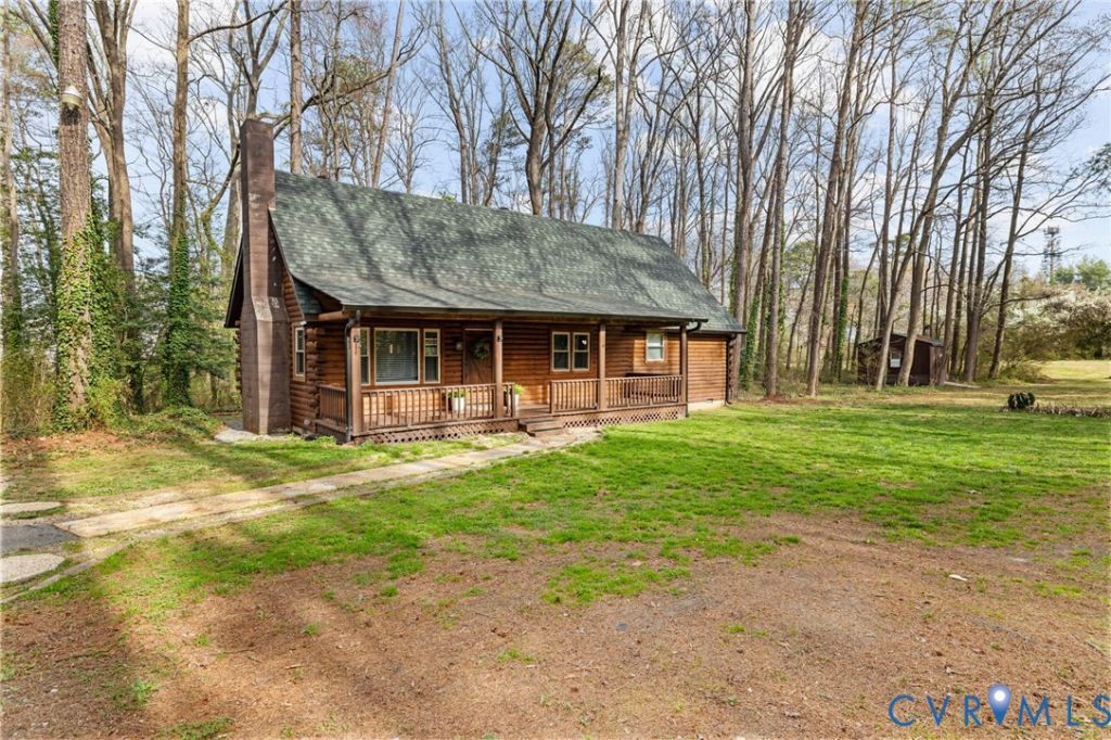 Charming log home nestled on 3.09 private acres in a highly convenient N.Chesterfield location, offering the rare combination of space, privacy, and accessibility. Enjoy peaceful country-style living while being just minutes from Powhite Parkway, restaurants, shopping, and everyday conveniencesThis inviting home offers 3 bedrooms and 2 full baths (septic permitted for 2 bedrooms) and features the warmth and character that only a log home can provide. The living area centers around a beautiful stone fireplace with a wood stove insert, creating a cozy and welcoming focal point. The interior features brand new carpet, giving the home a fresh, updated feel. Outdoor living is just as appealing with a full front country porch and a large rear deck, perfect for relaxing or entertaining while enjoying the quiet natural surroundings. This property provides incredible privacy and endless possibilities for outdoor living-whether you envision a garden, fire pit, play space, or simply enjoying the peaceful setting. Major updates completed in 2023 include a new roof, new heat pump, and new windows in 2024, offering added comfort and peace of mind. The home is served by Chesterfield County public water with a private conventional septic system. Additional features include a carport and a large storage shed, providing excellent space for equipment, tools, or hobbies. A very rare opportunity to own a charming log home on over three acres in this convenient section of Chesterfield County. Property conveys AS IS .