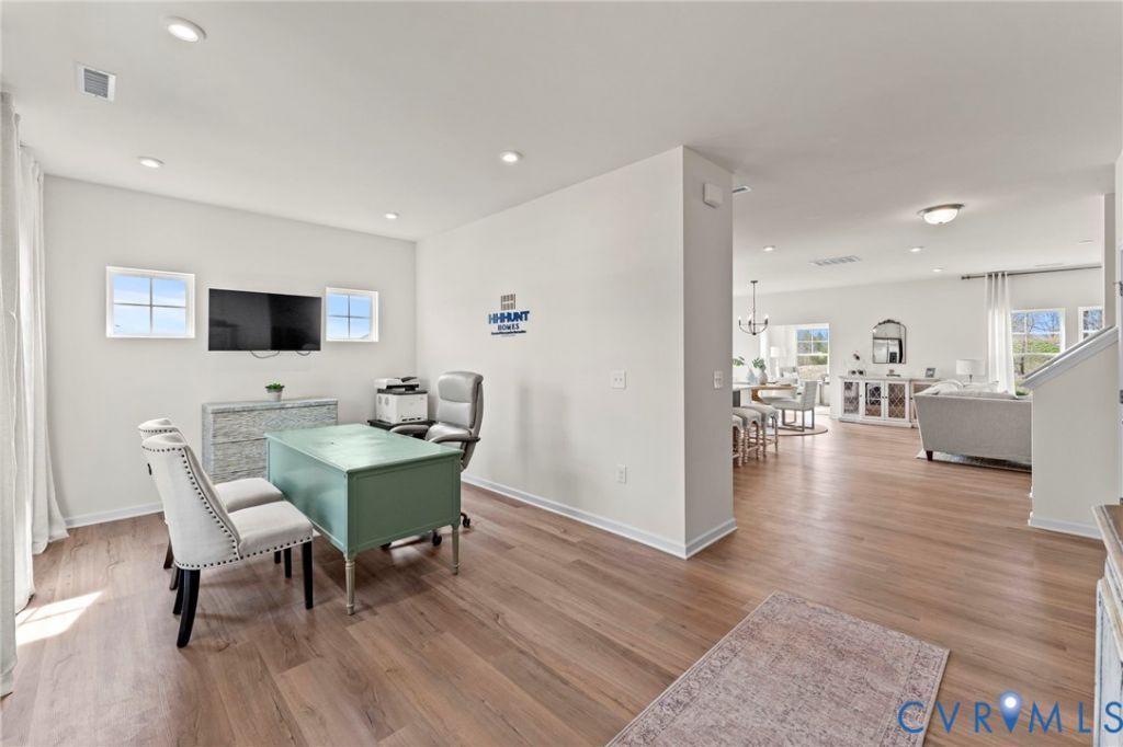 MEET THE CURIE! The Curie offers 6 BEDROOMS and 3 BATHS, including a first-floor guest suite. As you enter through the foyer, you are welcomed by a flex room that offers endless possibilities! If you love to entertain, set this space up as a formal dining room or if you're looking for a home office, add the french doors and create a private space ideal for working from home! Continuing on is the chef's kitchen with large center island, loads of counterspace and a pantry for storage. The kitchen overlooks like the dining area and family room (optional fireplace). There's a first-floor guest suite just off the living area with a walk-in closet and full bath. Upstairs, you'll find your Primary Suite with large walk-in closet and private bath with shower and double vanity! Four additional bedrooms, a full bath and laundry room complete the tour. ACT SOON - List price includes base price, suite and 5th bedroom, Purchaser may select structural and design options for an additional cost. The Curie offers the following options: fireplace in family room, morning room with loads of natural light, covered or screen porch and 3-car garage! Nestled on spacious, wooded homesites, Qualla Trace offers a tranquil setting with easy access to Hull Street Road and Iron Bridge Road for dining, shopping, and entertainment. Enjoy stress-free commutes with convenient routes to Route 1, the U.S. Defense Supply Center and 288, making it simple to navigate the Richmond metro area. (HOME IS NOT YET BUILT - Photos & visual tour are from builder's library & shown as an example only. Features & options will vary).